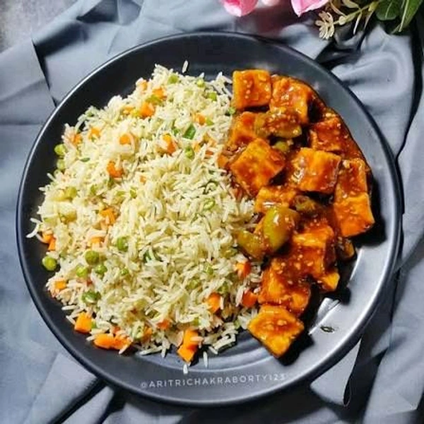 - Indulge in the Perfect Combination: Soft and spicy chilli paneer paired with aromatic, stir-fried rice.